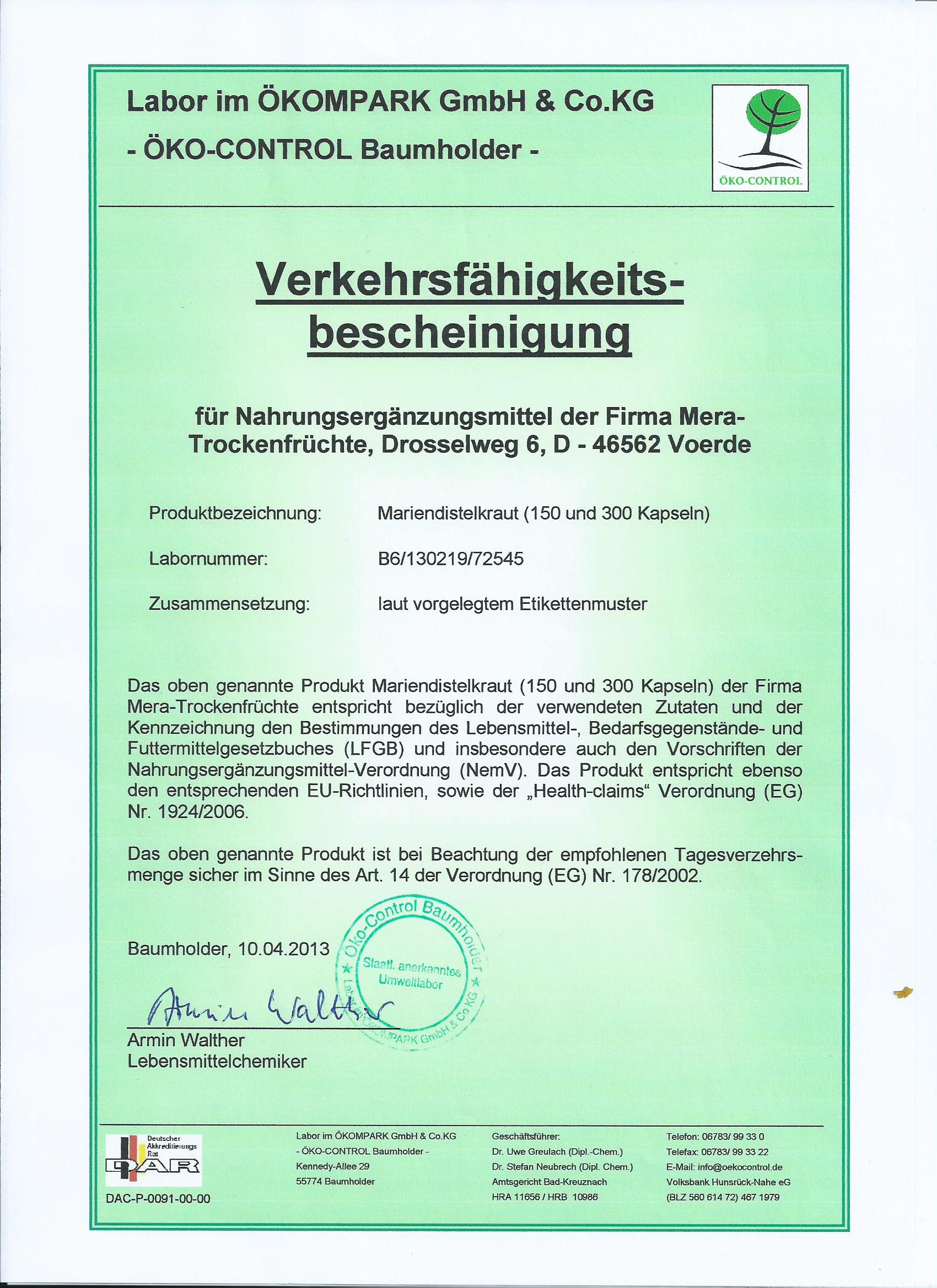 Kaufen Sie niemals Nahrungsergänzungmittel ohne Verkehrsfähigkeitsbescheinigung!!!