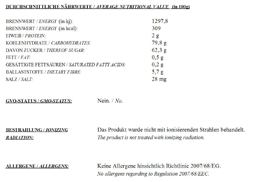 Unsere südamerikanische Ananas wird nur soweit getrocknet, dass eine geringe Restfeuchte bleibt, alle Inhaltsstoffe bleiben vollständig erhalten.